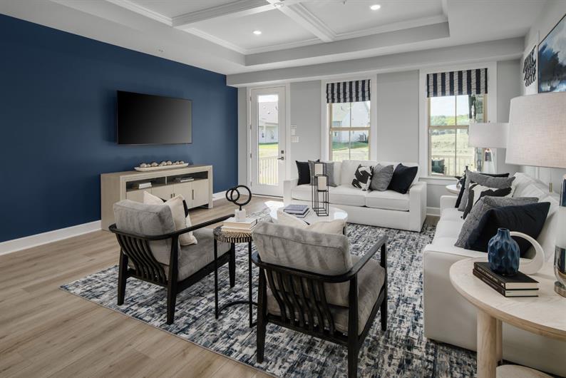 The Amalfi at Twin Masts offers easy, main-level living with 3 bedrooms and 3 full baths designed for comfort and flexibility. Start your mornings on the rear covered porch, where eastern-facing views bring beautiful sunrises and peaceful pond views, complete with the calming sounds of the nearby fountain. Inside, the finished basement expands your living space – perfect for entertaining guests, pursuing hobbies, or creating a private retreat. Ample storage throughout the home keeps everything organized and out of sight, so you can focus on enjoying your space.