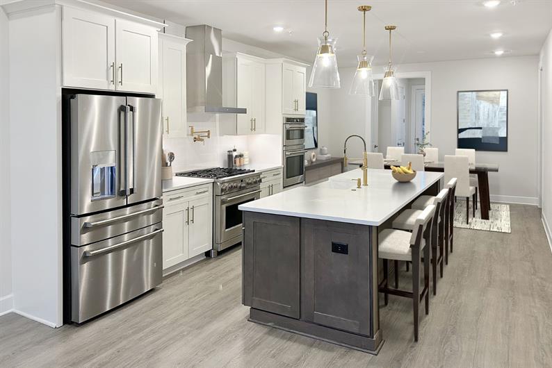 This Kensington home was thoughtfully designed with comfort in mind and comes complete with plenty of desirable, premium upgrades. Enter through the attached 1.5-car garage, or the welcoming foyer. The light-filled, open-concept dining, kitchen, and great room seamlessly flow together, making entertaining family and friends a breeze. The stunning kitchen showcases upgraded white cabinetry, an oversized maple latte island, quartz countertops, gold fixtures and hardware, a modern tile backsplash, hooded vent, and included stainless steel appliances – plus a washer and dryer. Just off the great room with a coffered ceiling, find your spacious rear deck, perfect for enjoying gorgeous evening sunsets. Conveniently located on the first floor, your luxurious owner's suite features a large walk-in closet and en suite bathroom with a frameless, tile-surround Roman shower, a dual quartz vanity, and private water closet. The finished basement boasts plenty of living space, as well as a bedroom with a full bathroom. Upstairs to the upper level, find a loft, three secondary bedrooms, and two full bathrooms. Contact us today to tour this incredible new home and learn how you can make it yours!