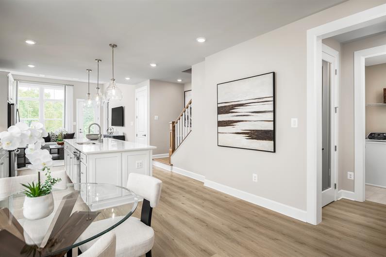 The Kensington villa is a sophisticated 28’ x 60’ attached home design that offers the perfect blend of single-family luxury and low-maintenance living. This thoughtfully crafted residence features main-level living with an owner’s suite, showcasing a spacious open-concept layout with 9’ ceilings and 8’ doors throughout. The heart of the home combines a gourmet kitchen, featuring a 10’ island, with an elegant great room boasting 12’ ceilings. Upstairs, two bedrooms with walk-in closets and a versatile loft provide comfortable family living. The home includes a 2-car front-entry garage, convenient main-level laundry, and multiple storage solutions. With options for a finished lower level and upgraded features throughout, the Kensington Villa delivers sophisticated comfort while maintaining the ease of attached living.