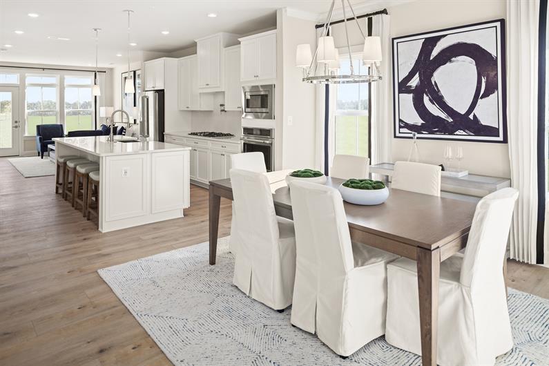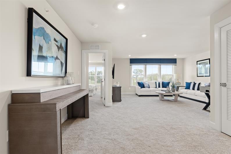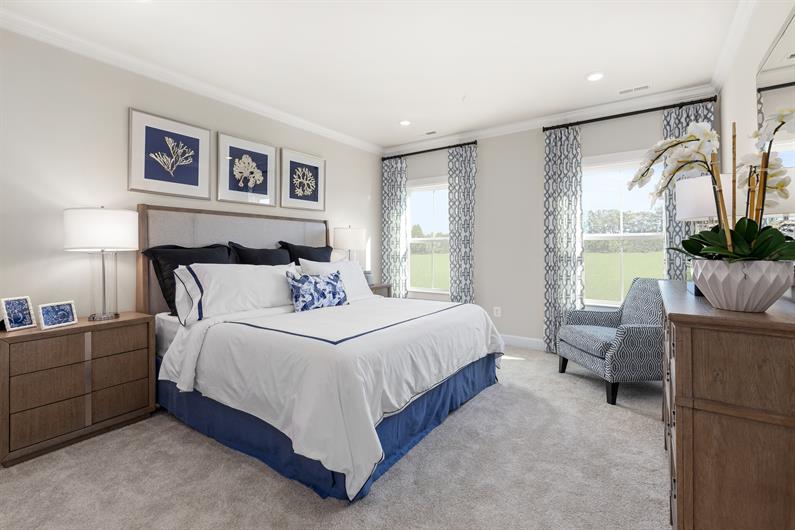 The Cypress Point grand townhome offers convenient one-level living. An elegant dining room greets you as you enter the foyer. The gourmet kitchen features a breakfast bar and is open to the two-story great room. Add the optional interior fireplace, or make it 3-sided and add the sunroom for even more light. The luxurious main-level owner's suite offers an enormous walk-in closet and double-bowl vanity. Upstairs, a loft overlooks the great room and leads to 2 additional bedrooms with walk-in closets and a full bath. Both bedrooms feature walk-in closets. The Cypress Point is pure luxury.